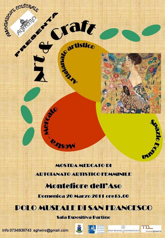 L'Associazione Culturale Agheiro presenta, all'interno del progetto "Marzo, il mese della Donna", Art and Craft, una mostra mercato di artigianato artistico tutta al femminile, che avrà luogo domenica 20 marzo dalle ore 15:00 presso la Sala Espositiva Partino del Polo Museale di San Francesco.