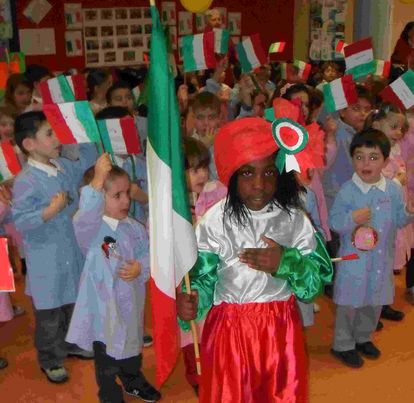 In particolare nella Scuola Infanzia di Via Togliatti, le insegnanti hanno trattato l'argomento in modo molto semplice ed i bambini hanno dipinto bandierine tricolore, coccardine , realizzato disegni, ascoltato filastrocche in rima sulla bandiera italiana, sulla costituzione, sull'unita' d'italia.