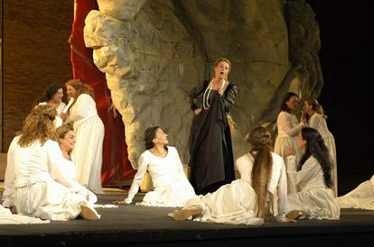 Con il ritorno in scena di Aida lo Sferisterio ricorda le sue origini: fu proprio con questo titolo che nel 1921 avvenne la trasformazione dell'arena da struttura sportiva a teatro d'opera. "Stiamo preparando la stagione del cinquantenario - dichiara Carancini - con una serie di venti speciali, grazie anche alla collaborazione di Patrizia Sughi, già direttore marketing in teatri importanti come Napoli, Bologna, Verona". Micheli entra nell'illustrazione dei cast. "Ll'inaugurazione sfodera una formidabile coppia di protagoniste femminili: Fiorenza Cedolins, una delle artiste più apprezzate degli ultimi anni in teatri come la Scala e Festival come Salisburgo (dove ha recentemente trinfato in Falstaff) è Aida, mentre Amneris è Sonia Ganassi, grande mezzosoprano rossiniano che ha recentemente esteso il suo repertorio ai ruoli verdiani ottenendo un grande successo personale in Oberto Conte di San Bonifacio alla Scala". Radamès è il giovane tenore spagnolo Sergio Escobar, che ha recentemente cantato in Nabucco a Parma e Norma a Bologna. Nel cast anche il grande Nazzareno Antinori che ritorna sul palcoscenico dello Sferisterio nella breve ma cruciale parte del Messaggero.