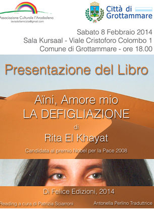 Grottammare | Sabato 8 febbraio alle ore 18,00 nella Sala Kursaal di Grottammare, l’Associazione culturale L’Arcobaleno, con il patrocinio del Comune, presenteranno il libro "Aïni, Amore mio. La defigliazione" dell'autrice marocchina Rita El Khayat.