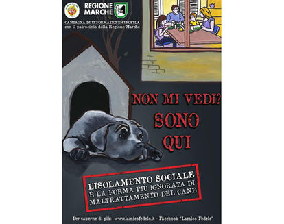 Isolamento sociale significa: relegare un cane in giardino o in un box o in un balcone o in una casa o in un cortile - non importa quanto grandi essi siano - dimenticandoci delle sue necessità di movimento, esplorazione, interazione, perlustrazione che caratterizzano ogni cane dal pincherino tascabile all'alano maxi. Numerosi sono i casi posti all'attenzione dell'associazione l'amico fedele e pochi i mezzi a disposizione per risolvere questo gravissimo fenomeno sociale per cui l'unico intervento apparso come efficace alla scrivente associazione era fare cultura ovvero "lavorare sulla testa dei cittadini".