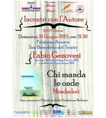 Domenica 21 giugno, alle 21,30 alla Palazzina Azzurra, ci sarà un incontro – anteprima della XXXIV edizione di “Incontri con l'Autore”, appuntamenti letterari organizzati dall'Amministrazione comunale in collaborazione con l’associazione “I luoghi della scrittura” e la libreria “La Bibliofila”. Ospite d’eccezione sarà Fabio Genovesi, vincitore del “Premio Strega Giovani 2015”. E' la seconda volta consecutiva che il vincitore del Premio Strega Giovani presenta il suo libro a San Benedetto: infatti lo scorso anno fu invitato Giuseppe Catozzella.