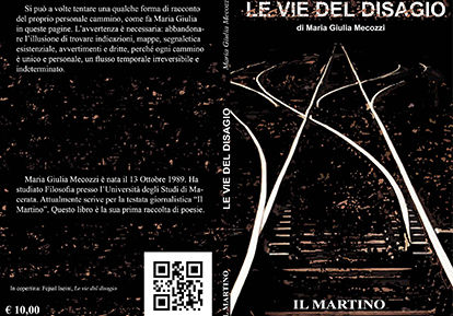 L'evento, patrocinato dal Comune di Martinsicuro, si inserisce all'interno delle iniziative culturali che precedono il Martinbook festival, kermesse letteraria in programma dal 22 al 25 luglio. A moderare l'incontro con l'autrice Maria Giulia Mecozzi sarà l'educatrice Vilalba Cistola, mentre il reading di alcune poesie, presenti nella raccolta, sarà affidato all'attrice Sara Palladini. Cenni sull'autrice Maria Giulia Mecozzi Nata a Teramo il 13 Ottobre 1989. Ha studiato Filosofia all’Università di Macerata ed ha ottenuto la specializzazione in Filosofia della Scienza ed Epistemologia. Appassionata di Esegesi biblica, teologia e filosofia scolastica medievale, fa parte del Centro Studi San Giacomo della Marca, nel quale attualmente si occupa di tradurre i sermoni del Santo Marchigiano, dal latino all’italiano per poi dedurre il pensiero filosofico celato all’interno di essi. Inoltre, scrive per la testata giornalistica locale “Il Martino” e lavora presso il Comune di Monteprandone, dove si occupa dell’ufficio stampa, cultura e comunicazione. Inizia a scrivere all’età 16 anni e il libro “Le vie del disagio”, pubblicato dalla casa editrice il Martino, è la sua prima raccolta di poesie.
