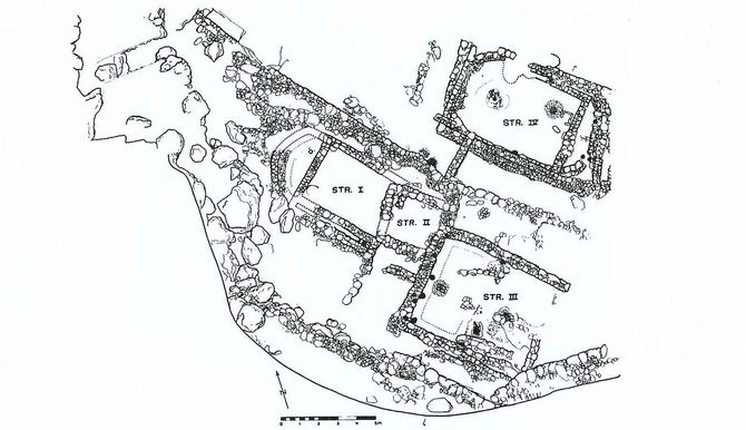 Fig 1: area Mazzola, Lacco Ameno. Pianta del complesso industriale, da Giorgio Buchner, Recent work at Pithekoussai (Ischia), 1965-71, in Archaeological Reports, 1970-71, p.65, Fig.5.